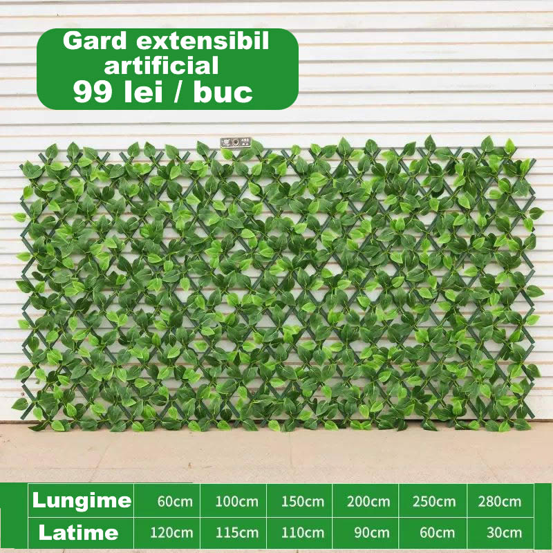Fie ca esti in curte, pe terasa sau pe balcon, gardul artificial este solutia ideala pentru a-ti oferii intimitatea dorita. Gardul Artificial Extensibil nu doar ca iti ofera intimitate dar confera locului in care este plasat, un plus viata, un aer fresh si modern.