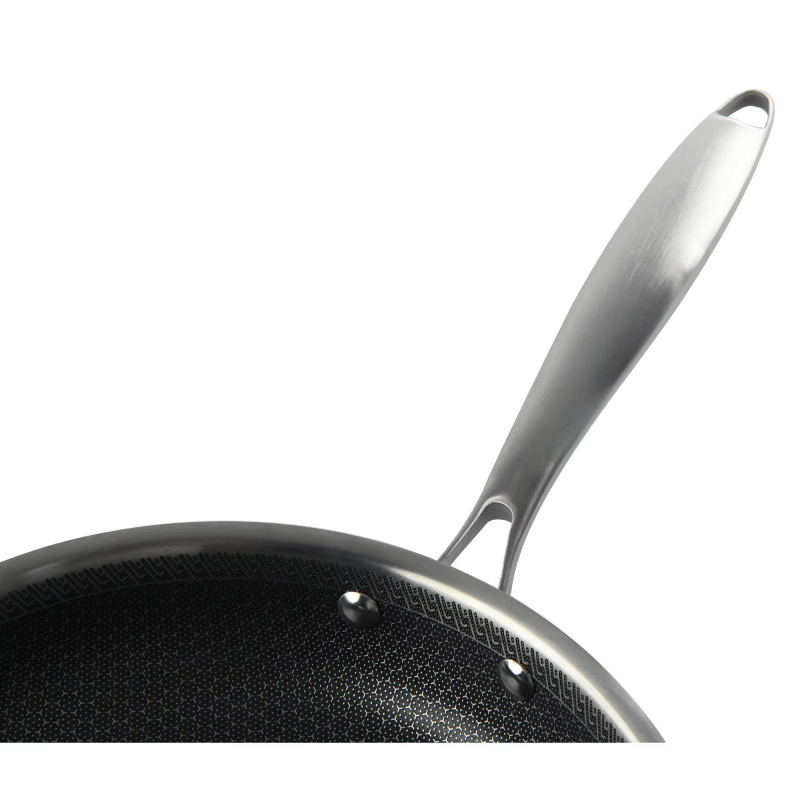 Tigaia este fabricata din inox cu invelis anti-aderent cu structura hexagonala tip honeycomb ( 3 straturi inox SS304 + aluminium + inox SS430), cu maner din inox, nituit, rezistent la soc si temperaturi inalte